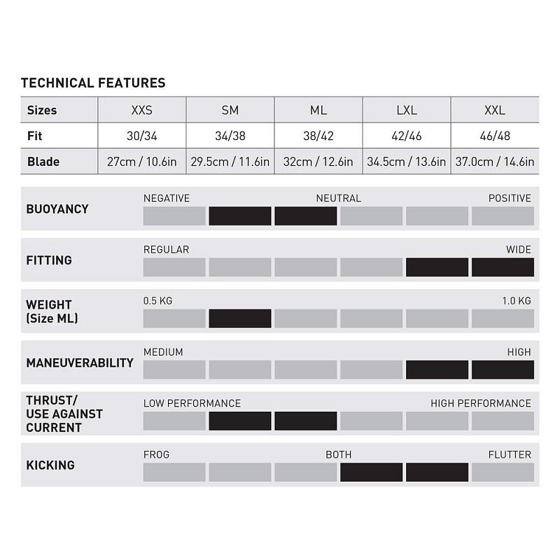 • Weiche Flosse mit verbessertem Channel Thrust für geringere Ermüdung
