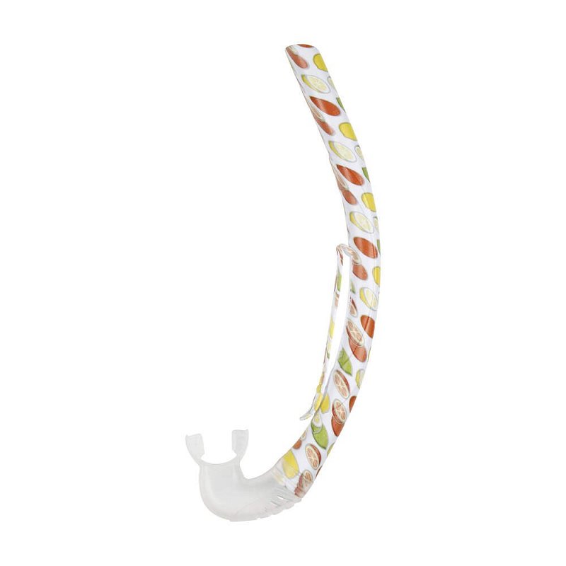 Featuring a high-quality mask and snorkel adorned with a lively fruit pattern in green, red and yellow, it's a hit among young swimmers.