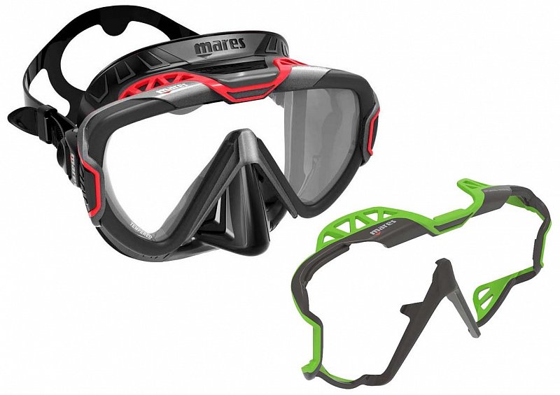 PURE WIRE MASKE + COLOR FRAME Mares KOSTENLOS Černá - Žlutá Černo - Červený rám